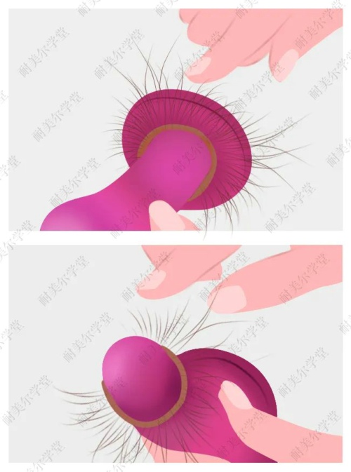 羊眼圈的使用讲究「先浅而轻,后深而微」,动作一定要轻不能重。轻一点,毛毛才能发挥作用;如果动作太猛,就会因为摩擦到皮圈产生痛感。