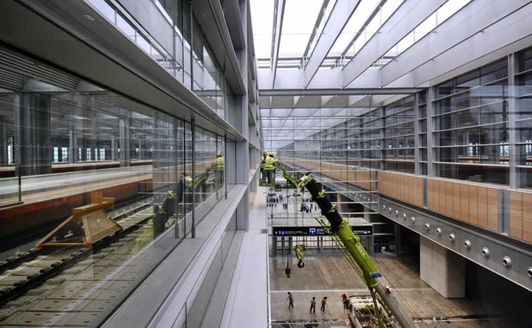 6月16日,技术人员在调试北京丰台站候车大厅内的大型滚梯。新华社记者 李欣 摄
