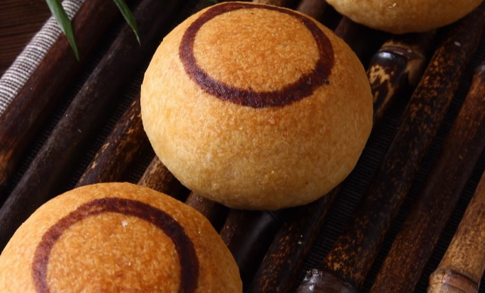 有的小伙伴可能会以为自来红月饼上的红印是色素,其实传统自来红月饼表皮上的红花纹是“磨水戳”烘烤后自然形成的。磨水戳是用糖、碱熬制而成的,最开始印在饼坯上的颜色是白色,但烤制以后就变成了深红色。