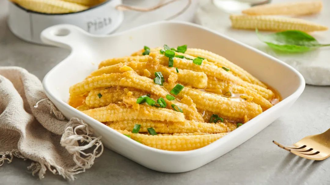比如迷你版的玉米——玉米笋。它富含蛋白质、糖和各类维生素等营养成分,关键的是,每一百克玉米笋的热量只有 27 大卡,比玉米粒少了几倍,是同分量米饭的五分之一,同时玉米笋的碳水化合物含量相对也比玉米粒少很多,这也是为什么,玉米被归为主食,而玉米笋的定位则更多是蔬菜。如此看来,玉米笋绝对是减脂期间的绝佳搭档。