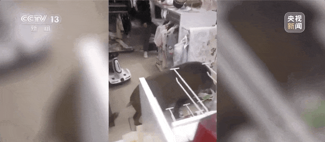 10月25日,浙江杭州街头,一头野猪闯入路边一间店铺;