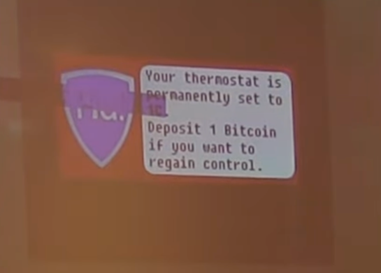 2016 年的 DEF CON 黑客大会上,来自英国安全公司的研究员展示了一种攻击家庭恒温器的勒索软件。