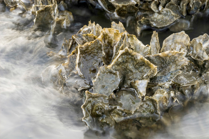 随着牡蛎礁面积的扩大,当海浪侵袭时,它们能减少海浪的能量,从而减轻海浪的强度|Clay Bolt