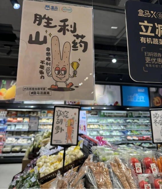 为了让人们更好接受“丑蔬菜”,盒马还为它们设计了一系列可爱的海报形象,吸引顾客购买。