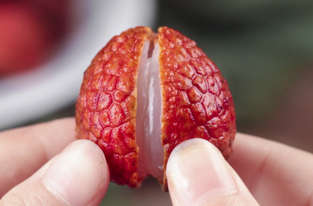 此外,荔枝壳(果皮)本身和荔枝肉(假种皮)之间是完全分离的。这就意味着,荔枝壳没有办法从多汁的果肉中得到水分补充,延缓黄褐斑褐变的形成。
