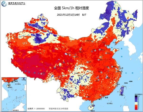 中国天气网分析师石妍分析,近期南方地区如此干燥主要是由于12月以来大部地区晴朗少云,降雨稀少;同时偏北干冷空气将南方大部(包括闽粤沿海地区)为数不多的水汽吹走,导致空气更加干燥。